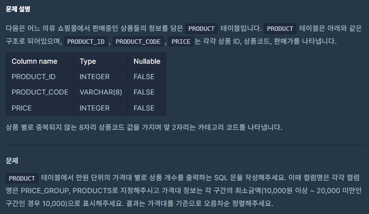 프로그래머스 : 가격대 별 상품 개수 구하기DB/MySQL 2023. 11. 26. 00:01